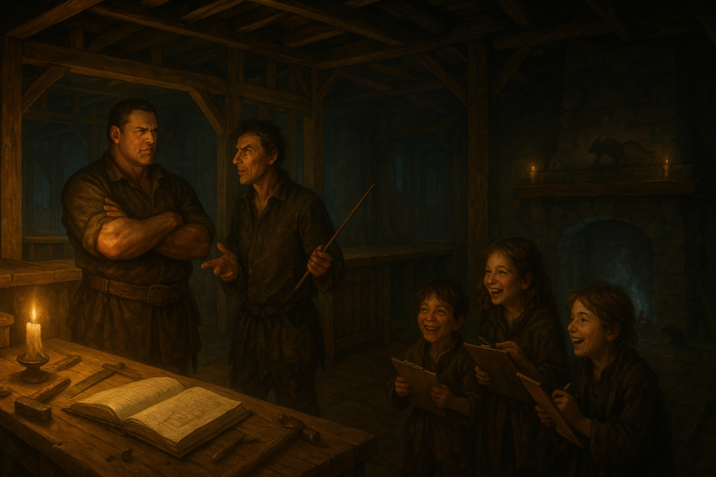 From orange juice debates to crossbow quarrels, the party’s first steps into Undercliff revealed polished orchards, hidden biases, and the first cracks in the scarecrow mystery.