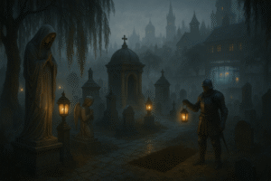 By three bells, Trollskull Manor rose ahead like a silhouette from a forgotten painting. The Urchins were asleep in the booths, curled in blankets. Clover lingered longest by the hearth before sleep found him—and when it did, it came cruelly. A nightmare: a rat chewing something that wasn’t food. The sound of tiny teeth, the glint of bone, and then—nothing. He woke cold and silent.